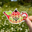 This sticker is perfect for folks who like nature, wildlife, caterpillars, porcelain teapots, and whimsical tea parties.