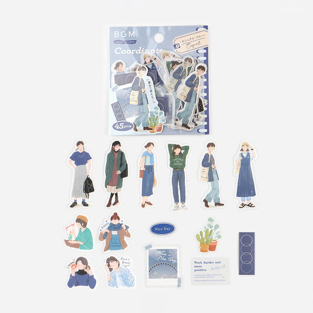 Girl Flake Sticker Casual Blue Coordinate (45 pieces)