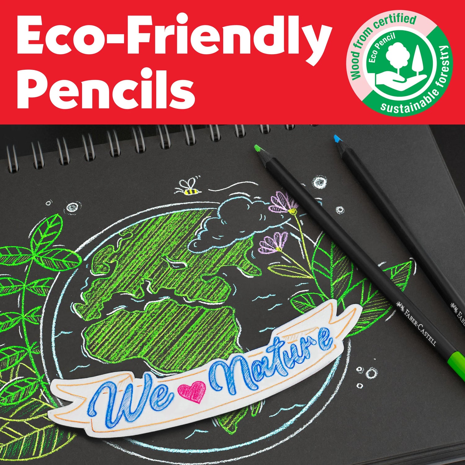 Environmentally friendly, the eco pencils are made of wood from certified sustainable forestry.