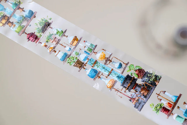 Channel the spirit of transformation with The Alchemist's Shelf Transparent Tape, a magical roll of a never-ending shelf with bottles and alchemical elements.