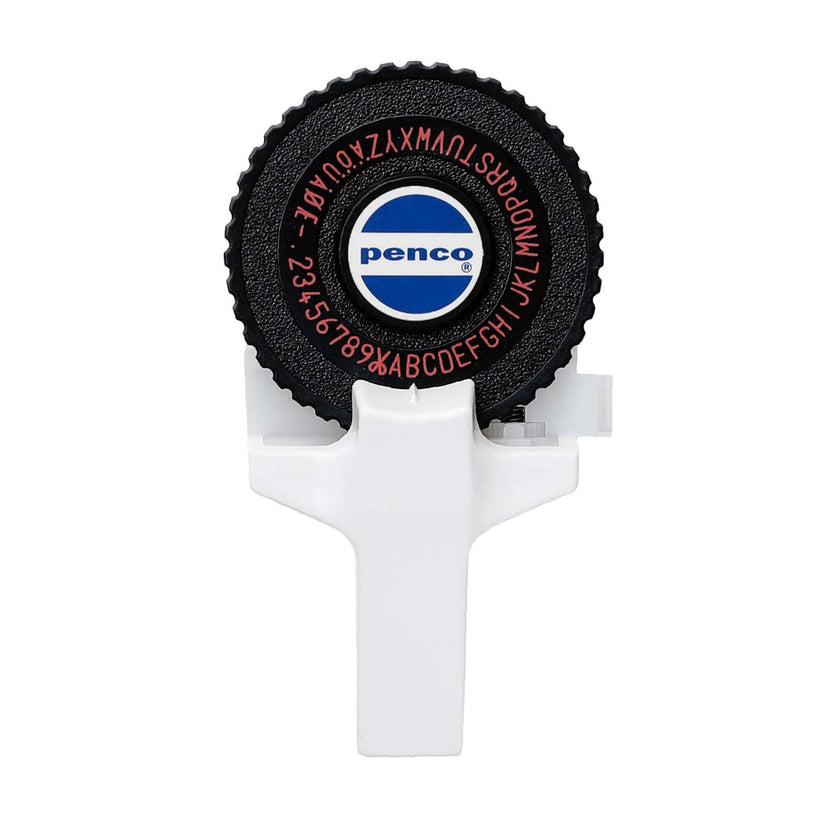 A classic embossing label maker with 0.4" tape by Penco. Comes with one roll of black tape, with options to set type as capital or lower-case letters.