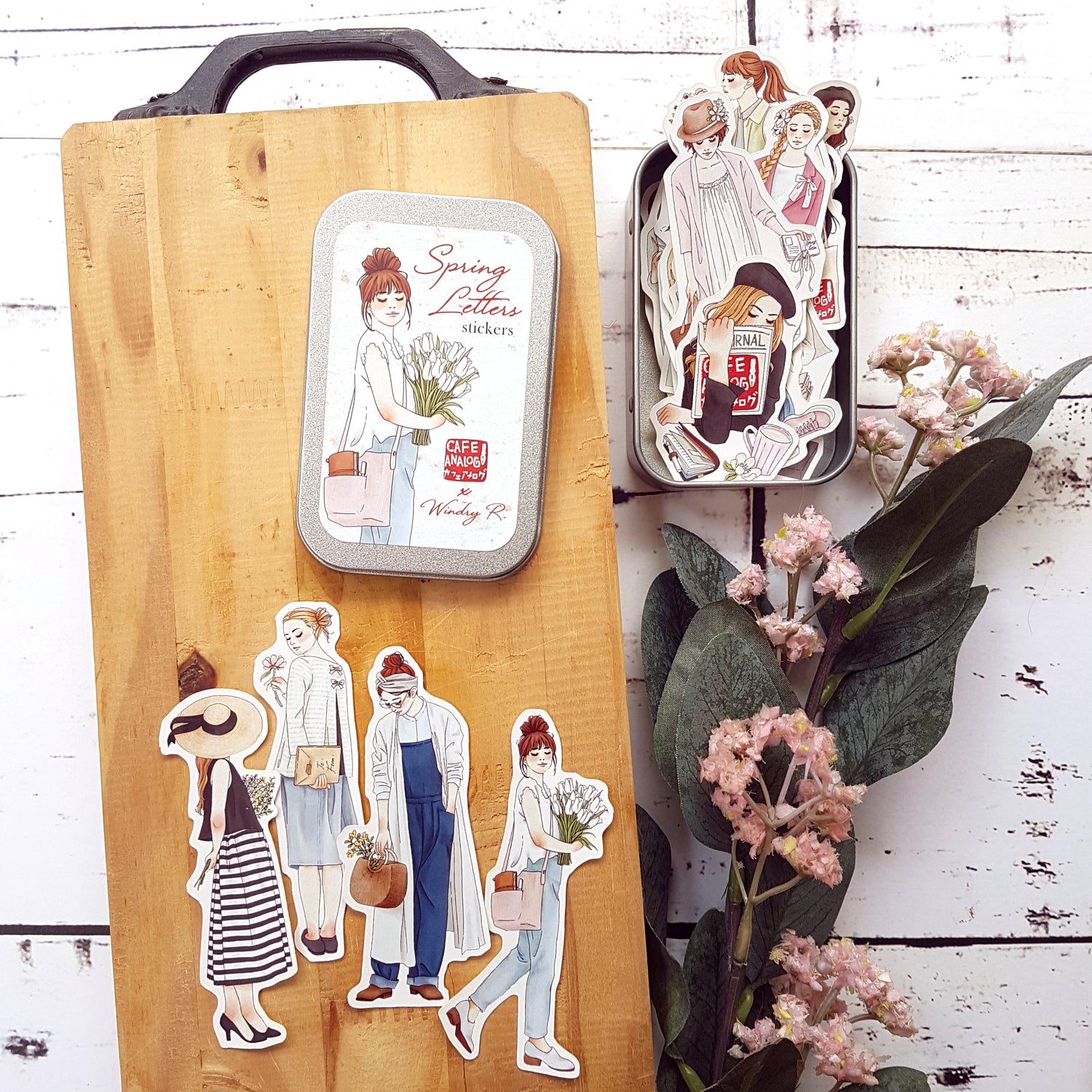 Cafe Analog X Windry Ramadhina Spring Letters stickers in tin