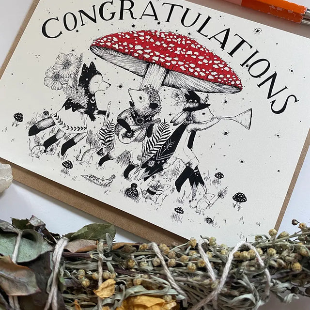 Card is A6 4.5" x 6.25" and comes with a Kraft Brown envelope and sleeved for protection.