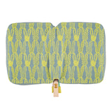 The light blue linen embroidered with yellow threads gives a bright and light impression. The embroidery gives a gentle touch that adds to the enjoyment of the design.