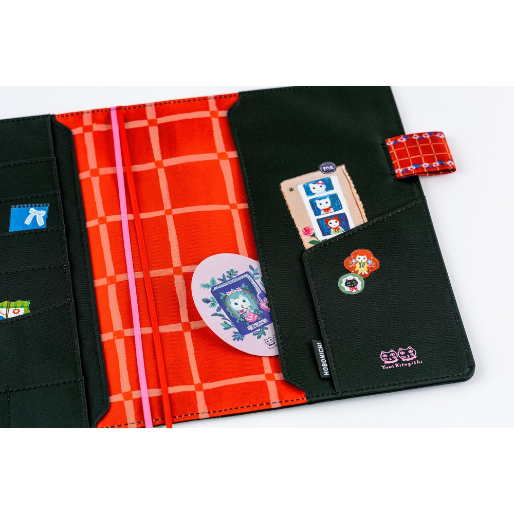 The cover interior comes in a red checkered pattern, which was also drawn by Kitagishi. The pocket on the right is decorated with the white and black cats. Additionally, the cute white cat is also depicted on a strip of film.