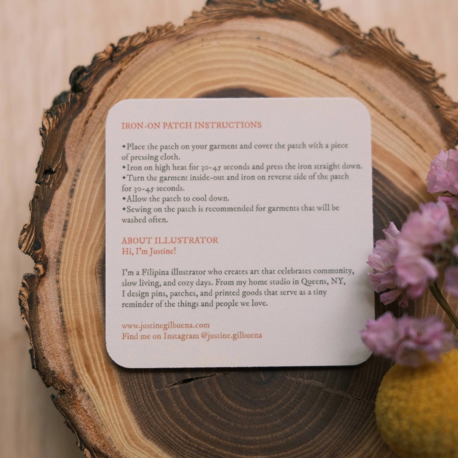 How To Apply: • Place the patch on your garment and cover the patch with a piece of pressing cloth. Iron on high heat for 30-45 seconds and press the iron straight down. • Turn the garment inside-out and iron on reverse side of the patch for 30-45 seconds. Allow the patch to cool down.