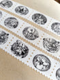 Perforated to look like a roll of postage stamps, this washi tape features a repeating pattern of ten designs in portrait format from hand-drawn pen and ink artwork by Jon Turner, recreated in incredible detail at miniature size. It can be applied like a tape, or cut into individual mini stickers; ideal for adding a finishing touch to envelopes, or journalling, or making a miniature gallery of adorably tiny prints. Perfect for Halloween, or for keeping the spookiness going all year round.