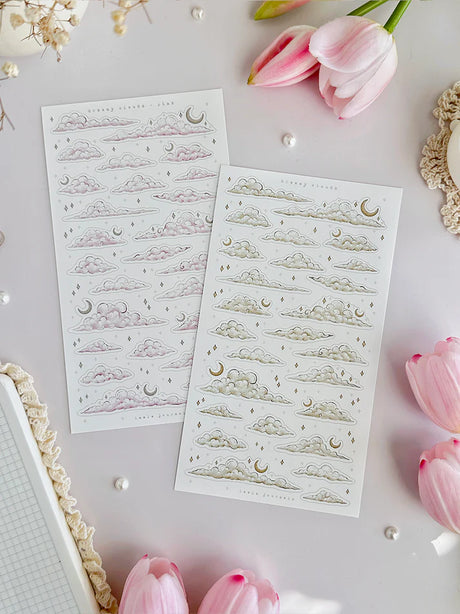 leelajournals Dreamy Clouds (Beige & Pink) Sticker Sheet - 2pc set