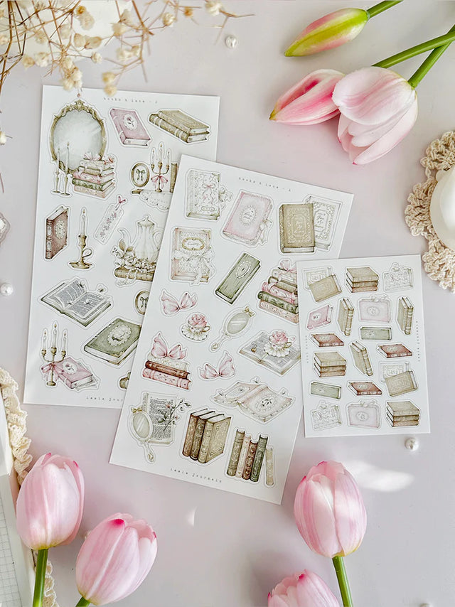 leelajournals Books & Lace Sticker Sheet - 3pc set is backordered and will ship as soon as it is back in stock.