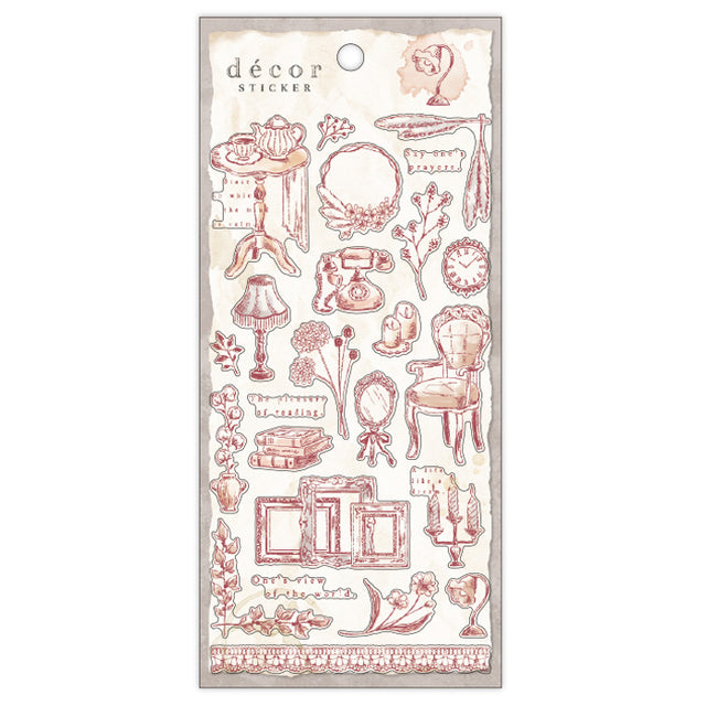 These illustrated stickers have an antique look, like illustrations from an old book.