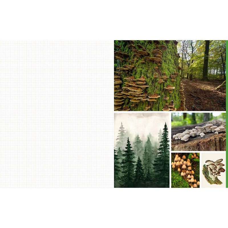 Let your creativity and imagination roam free as you create collages, scrapbooks, vision boards, and more by mixing and matching vibrant colors and textures. Stunning photographs and illustrations on high-quality glossy paper showcase the beauty and magic of the fungus kingdom, including macro photography of oyster, portobello, glowing bioluminescent mushrooms, and more. Images highlight the biodiversity of the forest floor, capturing woodland creatures including beetles, frogs, caterpillars, and more.