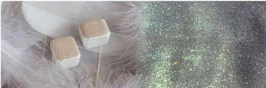 A gorgeous set of 4 half-pan pearlescent watercolor. Perfect for art and calligraphy. The color in this collection looks best on black paper