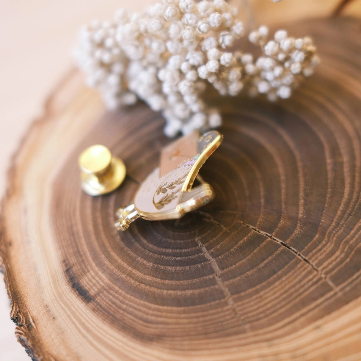 - Pinned on a small illustrated card with locking clasp