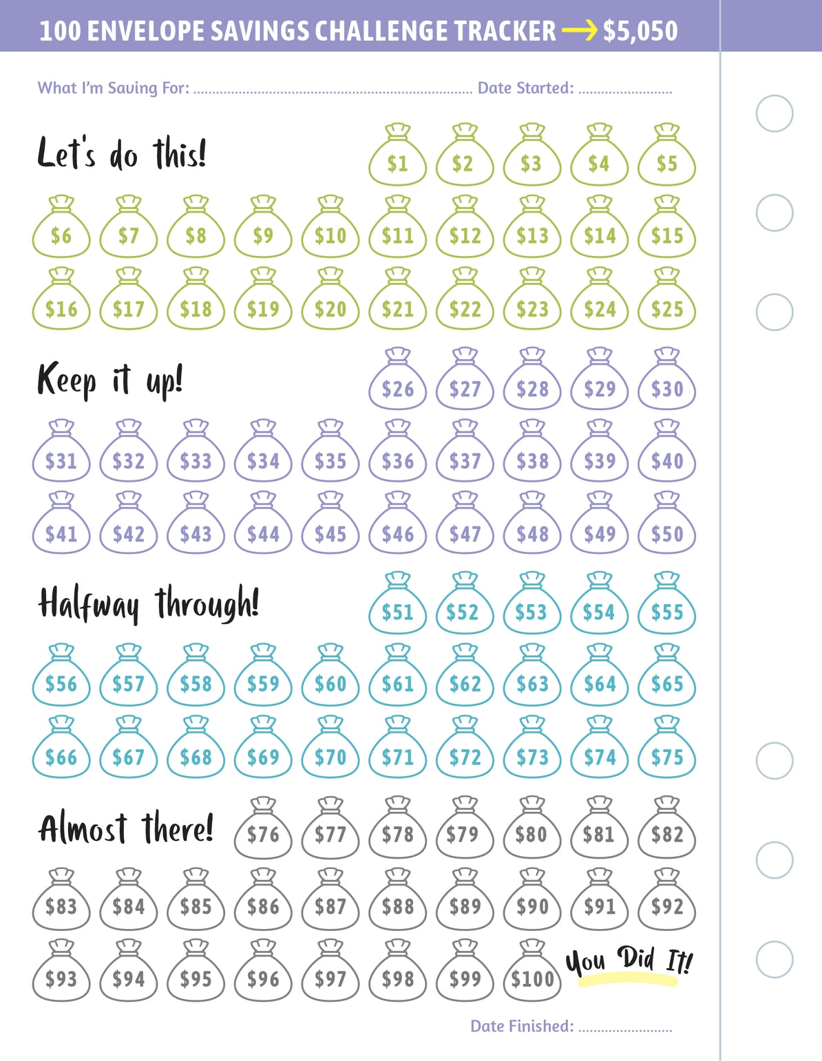 Saving money can be hard. But there's a secret weapon to make it easier: A money-saving binder that transforms saving into a game! This Savings Challenge Binder makes it oh-so-satisfying to tuck hard-earned cash in an envelope, check off a tracker card, and achieve your goals!