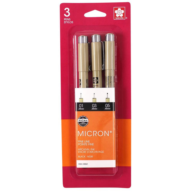Pigma Micron Pen Set Black Ink (01, 03, 05)