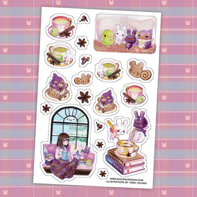 Sakuradragon Books and Chai Sticker Sheet