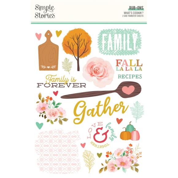 Instant beauty on virtually any surface you can imagine. These transfers are easy to use rub-on transfers that release onto a wide variety of surfaces allowing for a multitude of decor, furniture and multi-media uses. Simply peel off the backing, rub-on and transfer a beautifully detailed design to transform your next piece into a work of art. This package contains Simple Stories What's Cookin'? Rub-Ons, two 6x8 inch sheets. Imported.