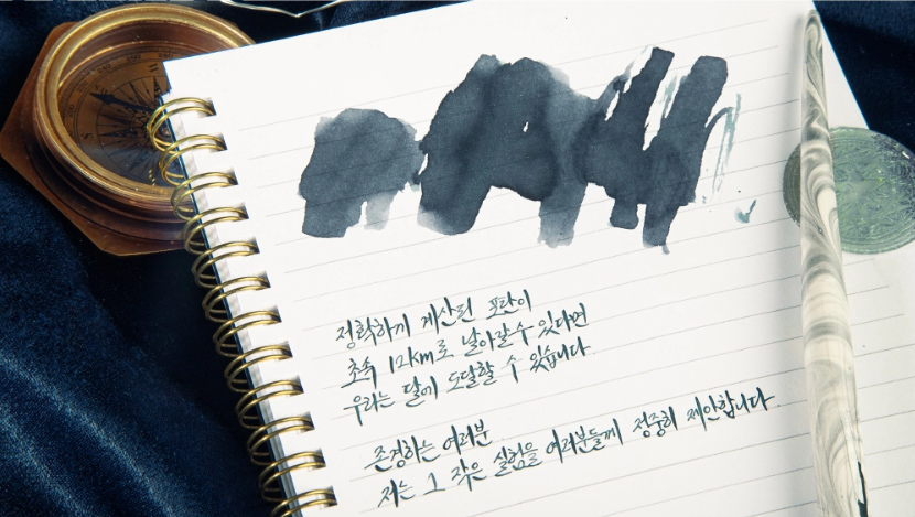Inspired by a novel about the dream of sending people to the moon by launching a cannonball towards it, this ink captures the view of Earth from the moon. The ink features a grayish-blue base with shimmering blue glitter, evoking the image of Earth seen from the lunar surface.