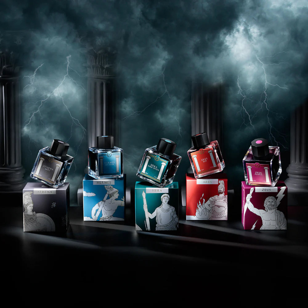 Immerse your writing in mythic beauty with Laban’s Greek Mythology fountain pen inks. Each 50ml bottle is inspired by the gods of Olympus, with packaging featuring beautifully illustrated deities holding pens.