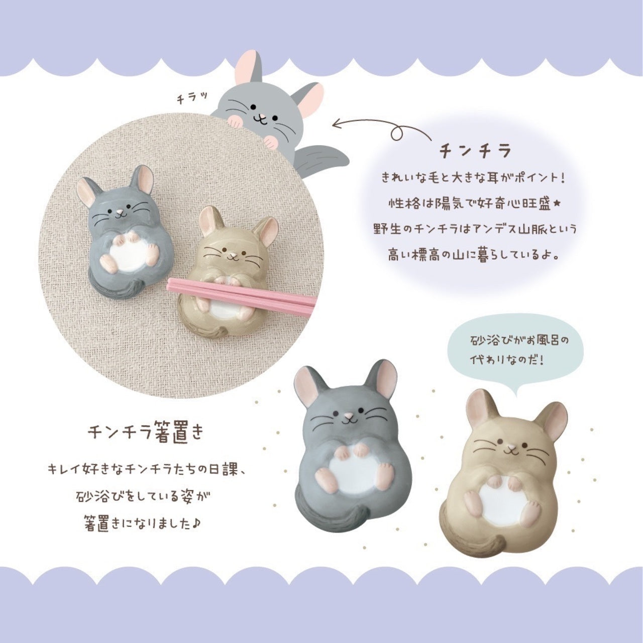 Collect the series and enjoy chilla life♪ The chopstick rests feature the clean-loving chinchilla's daily routine of taking a sand bath♪