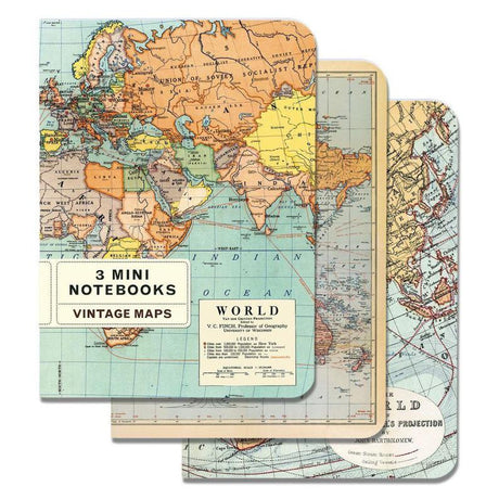 Juego de minicuadernos con mapas del mundo, paquete de 3 Cavallini & Co.