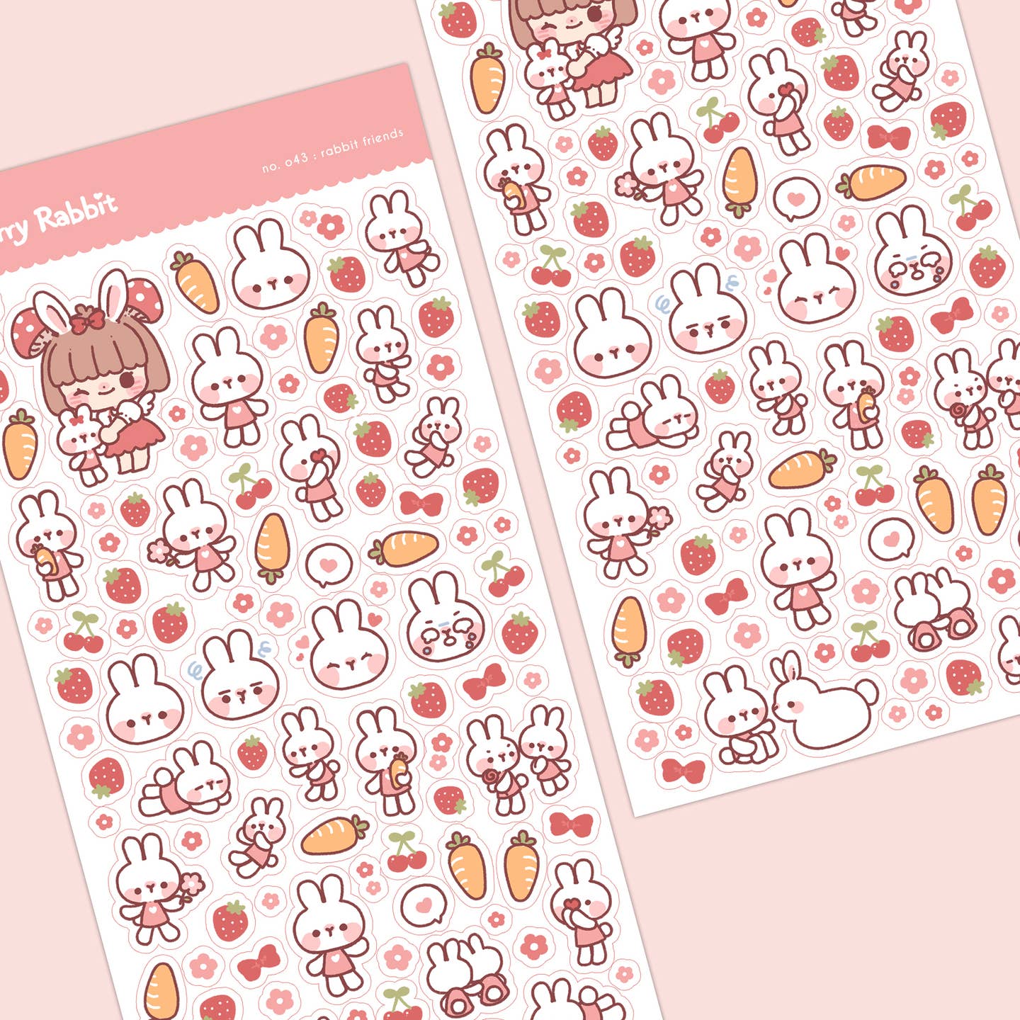 Cherry Rabbit Rabbit Friends Sticker Sheet