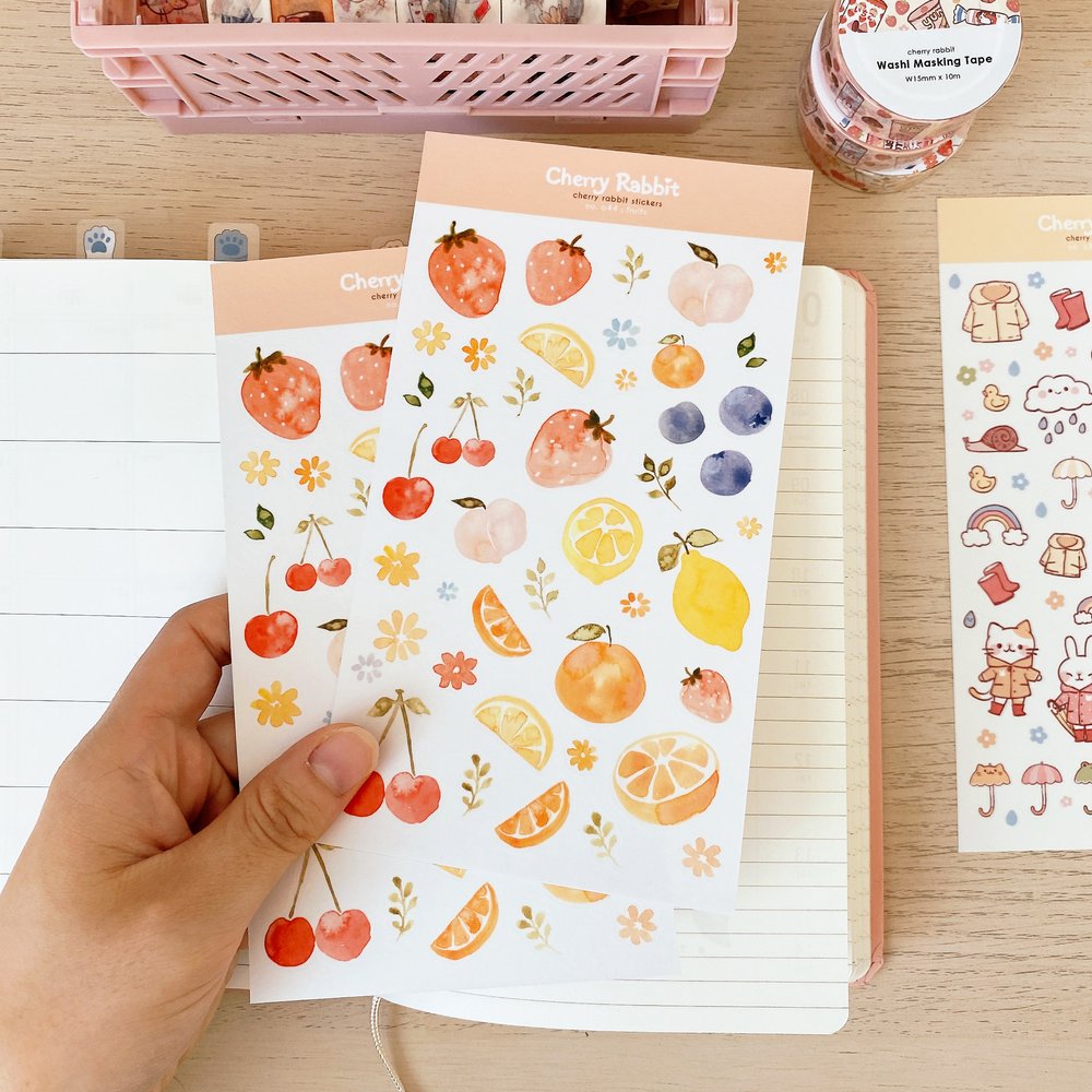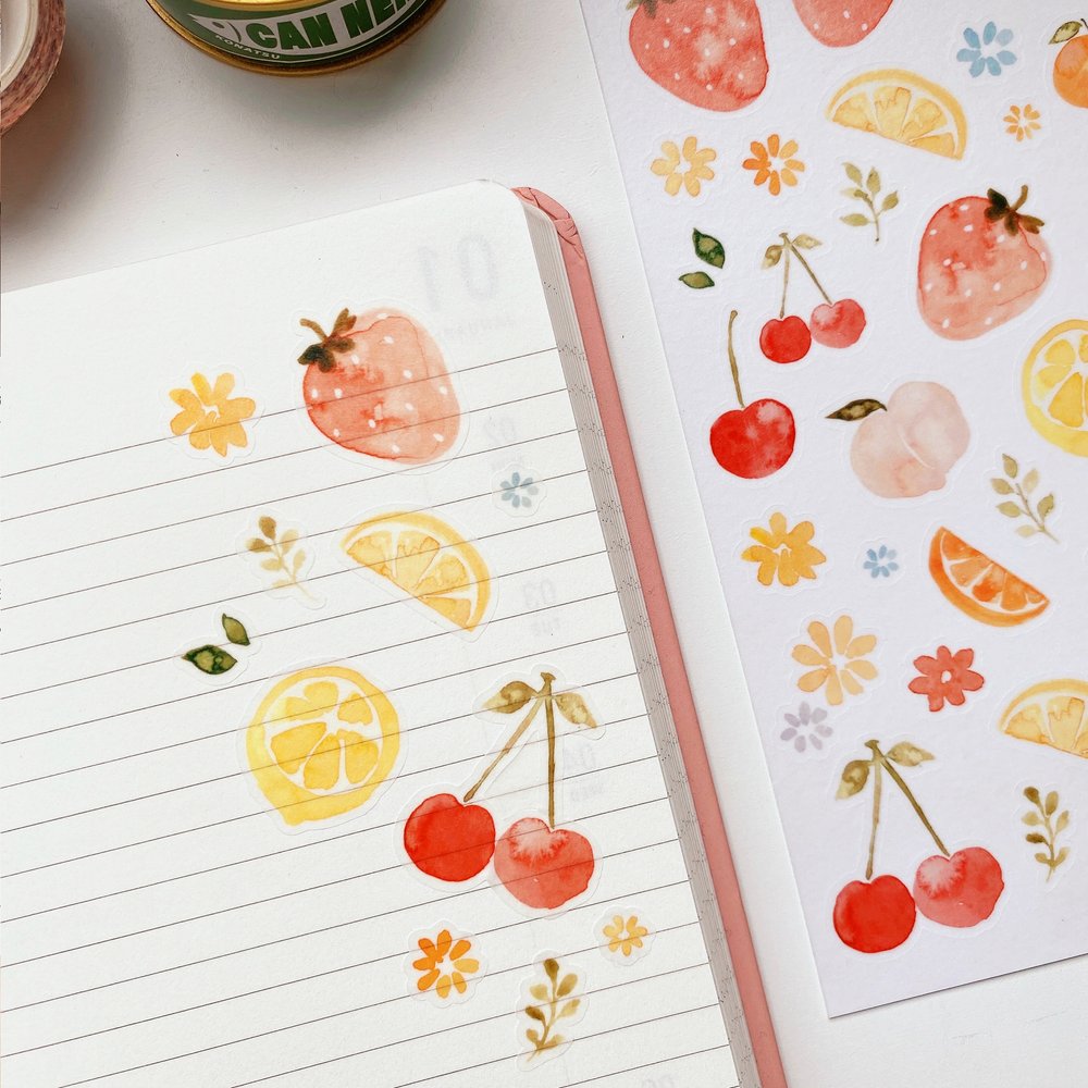 Pegatinas de papel washi semitransparentes. Decora tu agenda o diario con estas simpáticas pegatinas de frutas ♡
