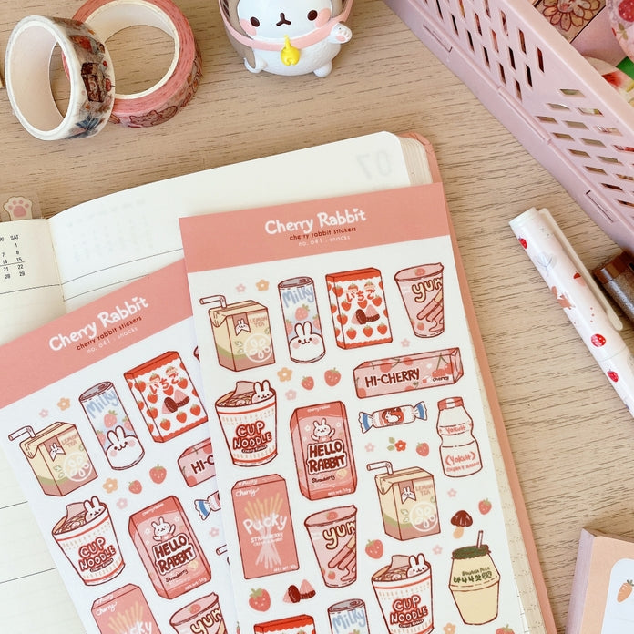 Pegatinas de papel washi semitransparentes. Decora tu agenda o diario con estas simpáticas pegatinas de snacks ♡
