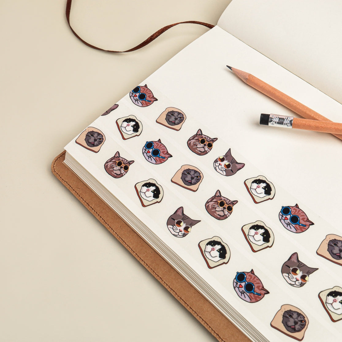 Cinta adhesiva transparente con forma de gato de pan