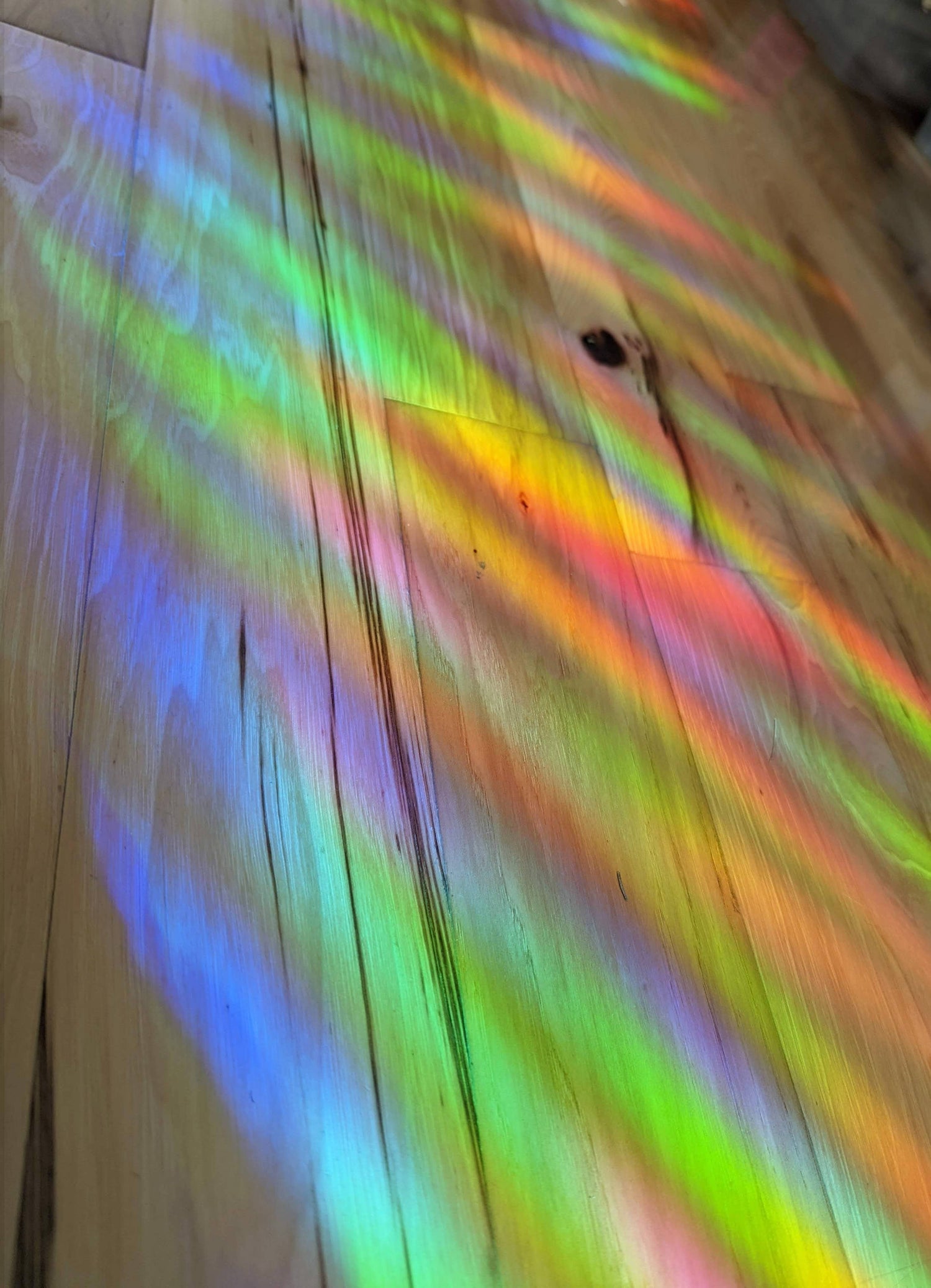 Coloca tu nueva calcomanía atrapasol en una ventana con luz solar * directa * (¡esto es muy importante!) ¡y observa cómo ráfagas de arcoíris vibrantes bañan tu espacio!