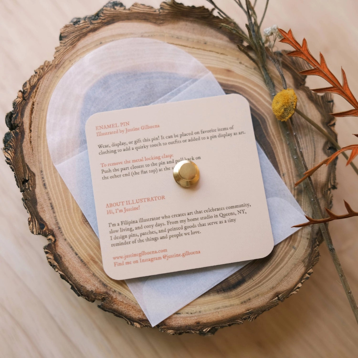 Wear, display, or gift this pin! It can be placed on favorite items of clothing to add a quirky touch to outfits or added to a pin display as art.