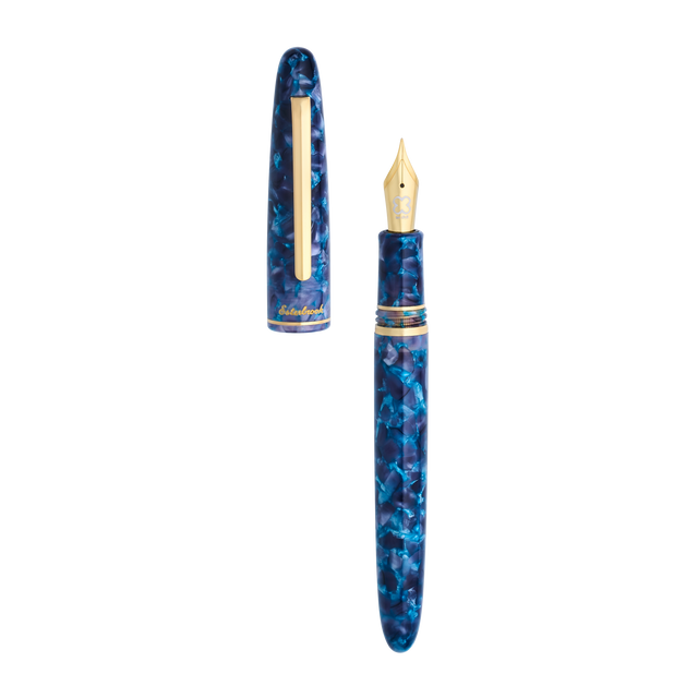 The Blue Moon Estie is a celestial addition to Esterbrook’s collection, evoking the beauty of a starlit night sky. Its deep, swirling blue resin shimmers with subtle variances, mirroring the luminescence of a moonlit evening. The pen offers the classic Estie features, including a sleek, vintage-inspired silhouette and smooth writing experience. With a modern cushion-cap closure system and a variety of nib options, it seamlessly combines practicality and elegance.