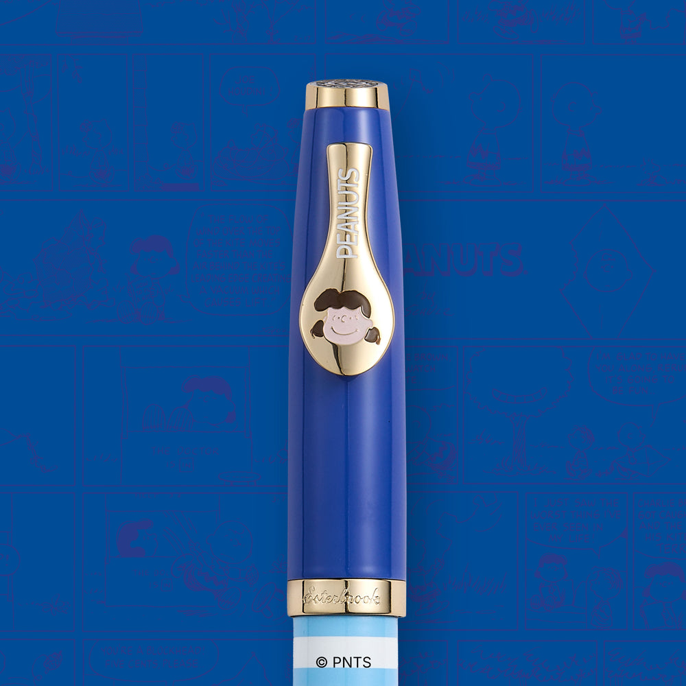 Lucy van Pelt’s bold, no-nonsense personality comes to life in this sleek blue Esterbrook pen. Perfect for running her psychiatry booth or jotting down plans to take charge of the playground. Choose a fountain pen in Medium or Fine international #6 nib with a “Good Grief” engraved nib, or a ballpoint for quick notes with attitude. Each set includes a cloth inspired by Lucy’s classic outfit and carries with it a bit of her...ahem, "charm".