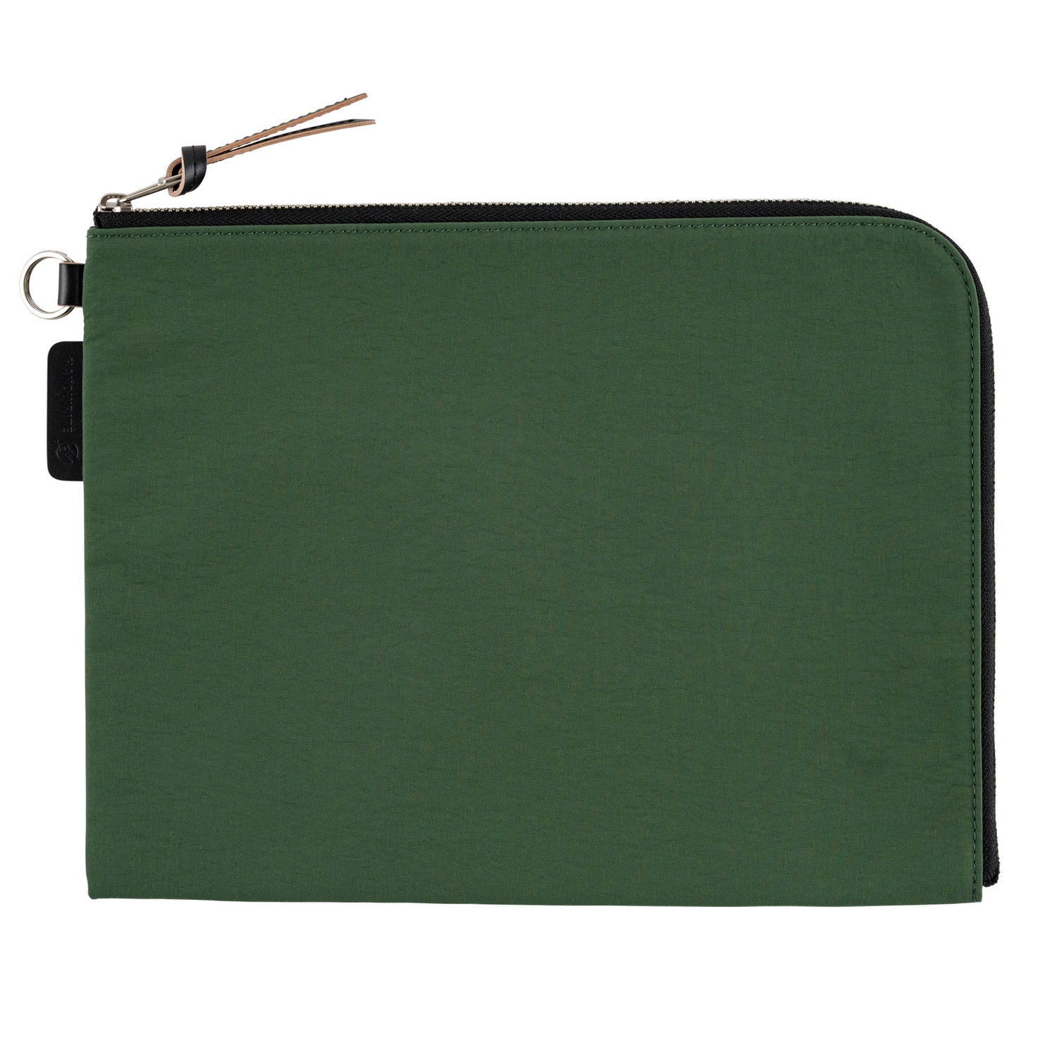 Creamos una funda para guardar el Hobonichi Techo HON. La cremallera en forma de L abre la funda de forma más amplia para facilitar el acceso, pero no tiene refuerzo y es plana, por lo que se ve extremadamente simple y elegante. Buscamos una belleza informal que sea elegante sin esfuerzo. Esta funda es bonita y liviana y está hecha con el mismo material que la funda Tragen, que utiliza un nailon suave con un brillo elegante.