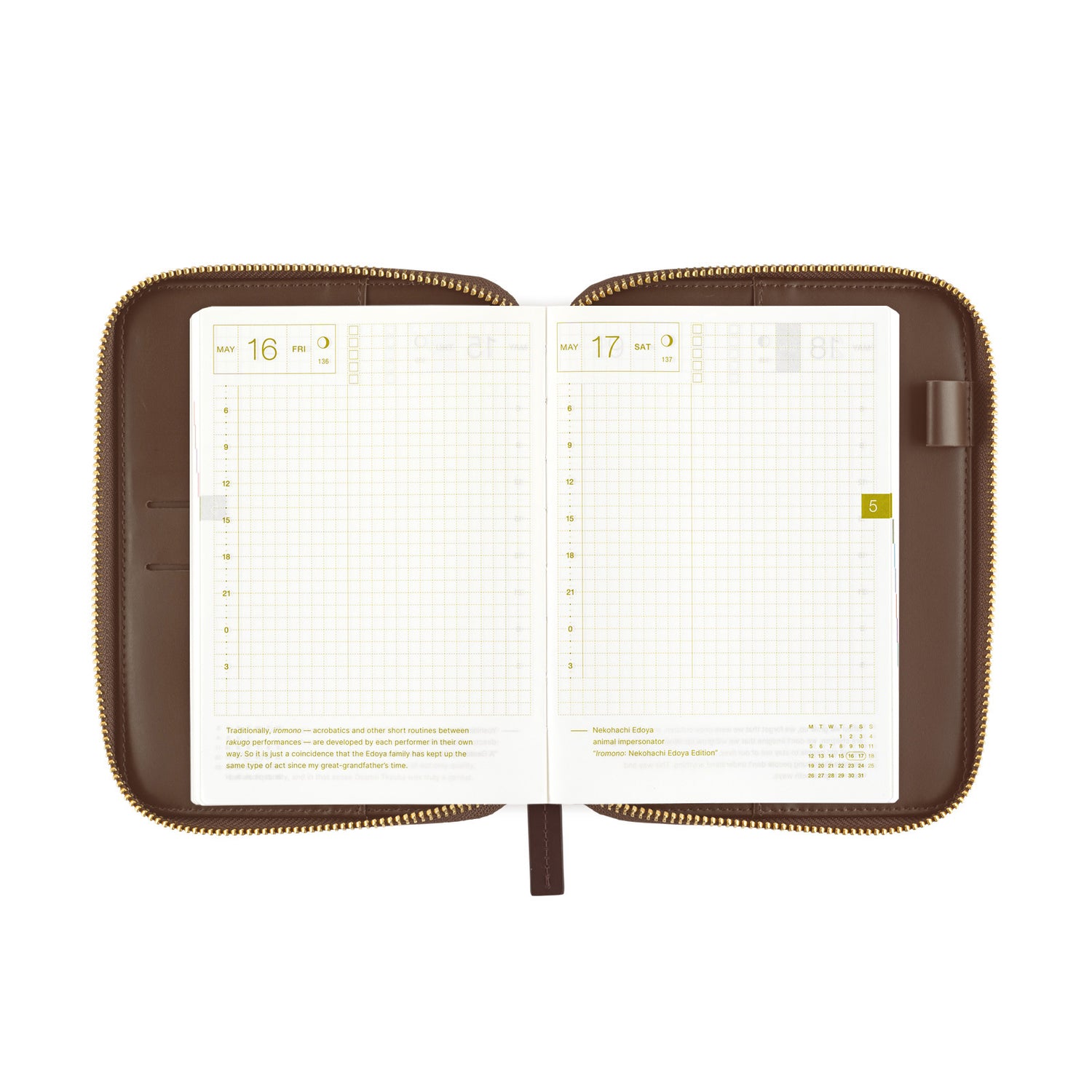 Hobonichi 2025 A6 Funda tensa con cremallera (Café au Lait Plaid)