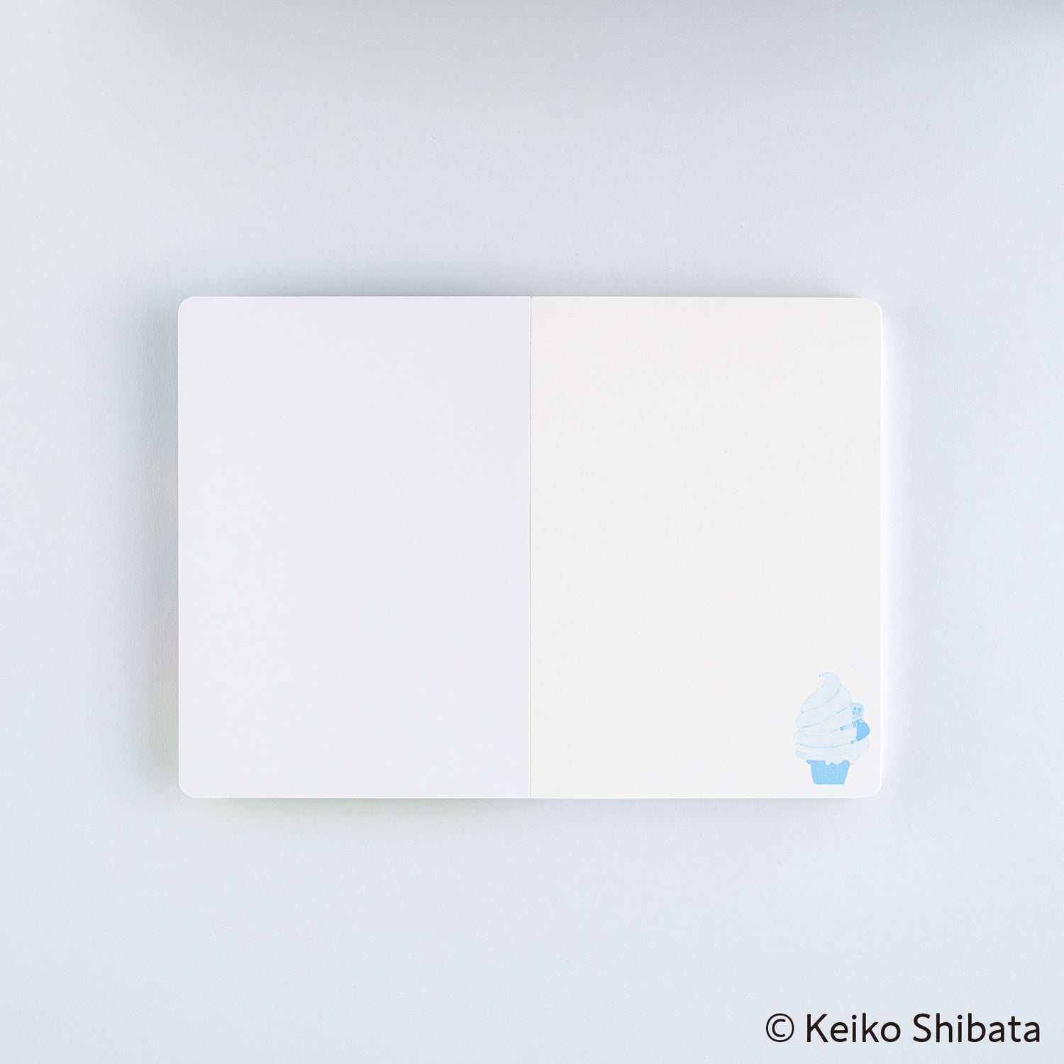 En el interior también se puede leer “Ueda-san” abrazando un helado suave, impreso en un azul verdoso pálido.