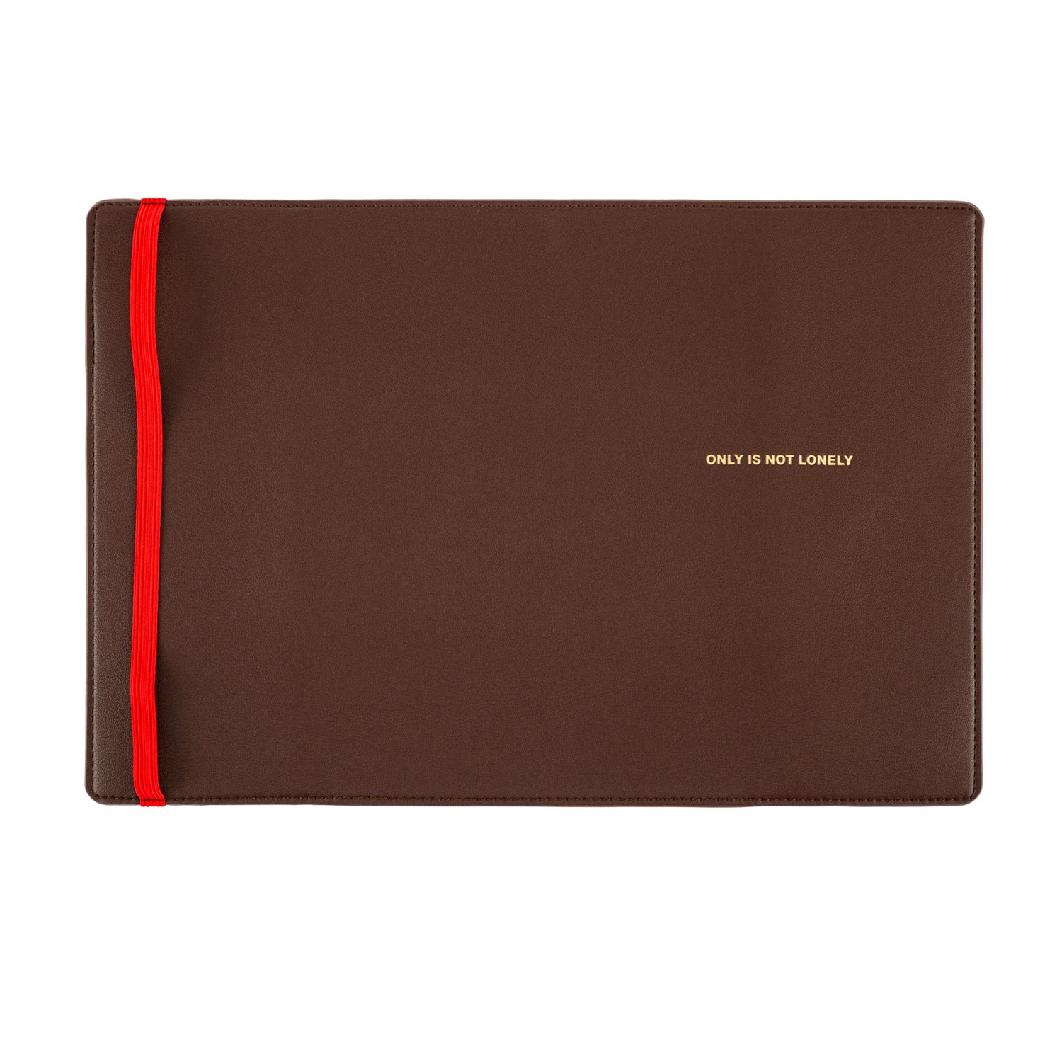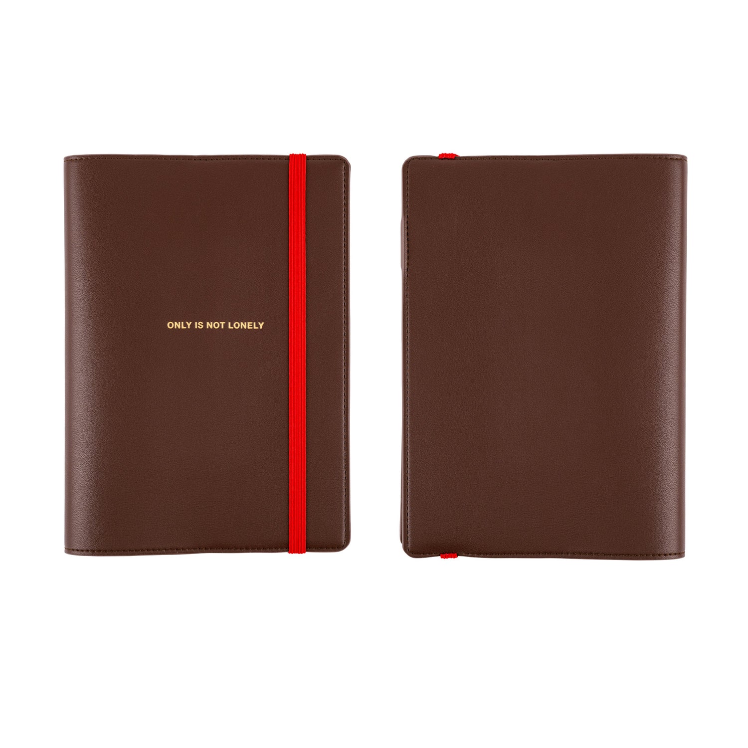 La cubierta es de color marrón chocolate, lo que le da un aspecto básico que resulta fácil de llevar a todas partes. El mensaje está estampado en dorado y la banda elástica es roja para combinar bien con el marrón. La combinación de colores relajante y energizante es bastante atractiva.