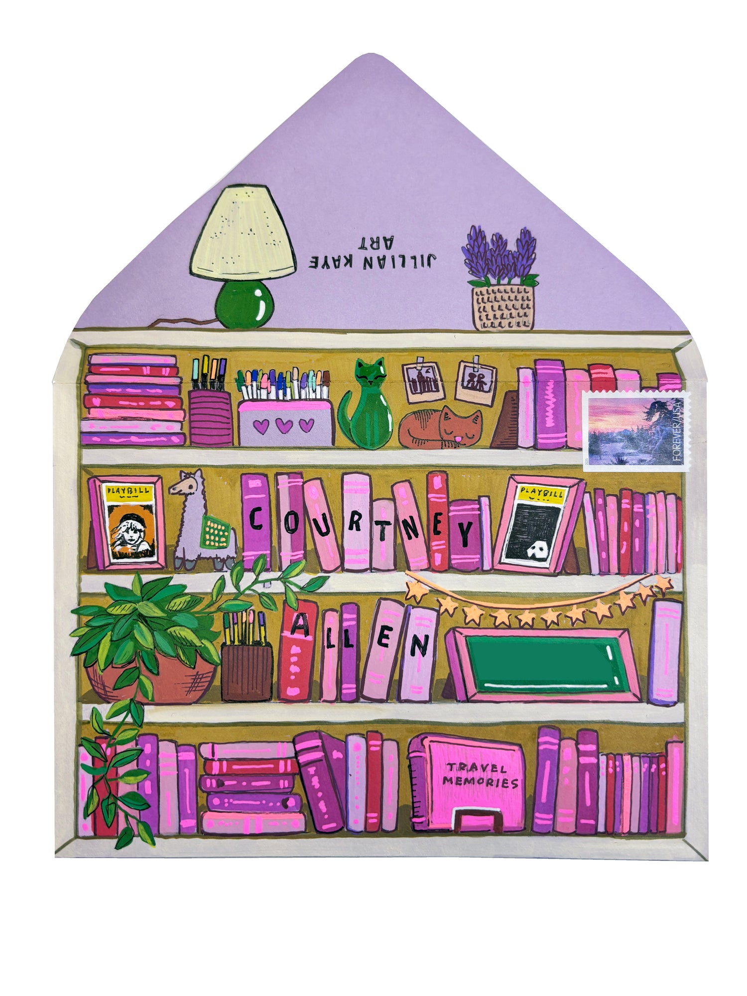 Jillian Kaye is an illustrator and hand-letterer from Saint Louis, MO with a passion for snail mail. For over ten years, Jillian's mail art has been traversing mailboxes and inspiring other artists to shift their canvases to an envelope. When she's not sending mail, Jillian creates illustrations, lettering, and murals for a variety of clients, including Sakura of America, NASCAR, Allianz, and Capital One. To see more of her work, visit www.jilliankayeart.com.