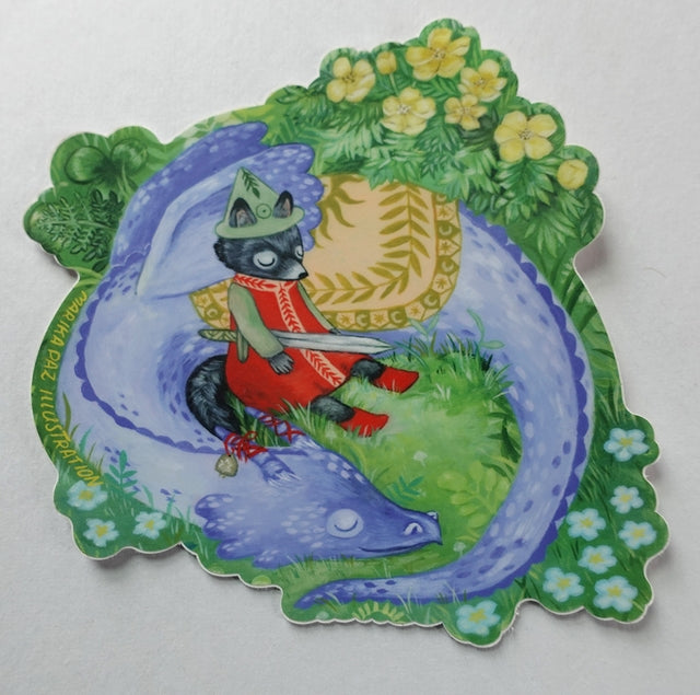 Un caballero gentil descansa en las flores de primavera con su amigo. Esta calcomanía de vinilo mate es resistente al agua y a la intemperie. ¡Pégala en un cuaderno, una bicicleta o un automóvil y no se perderá en ningún lado! También puedes colocarla en una botella de agua o en el lavavajillas. Esta calcomanía puede ir en cualquier lugar. La calcomanía mide 4,3" x 4,5". Impresa en EE. UU.