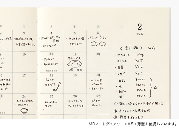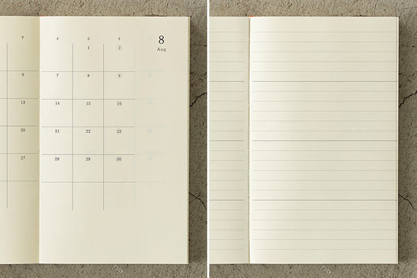 diary features a flexible monthly block format with ample margins, and a combination of 8-ruled and plain memo pages.