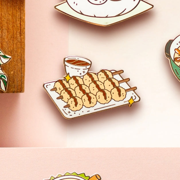 Este delicioso bocadillo de calamar acaba de salir de la parrilla y está listo para agregarlo a su colección de pins esmaltados. Está sazonado a la perfección y se ve casi tan bueno que parece que se comerá... ¡pero no se coma este pin! ¡Vaya a comer el verdadero, por favor!