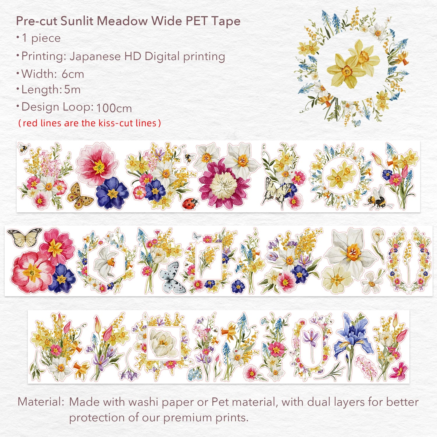 Pre-cut Sunlit Meadow Wide PET Tape