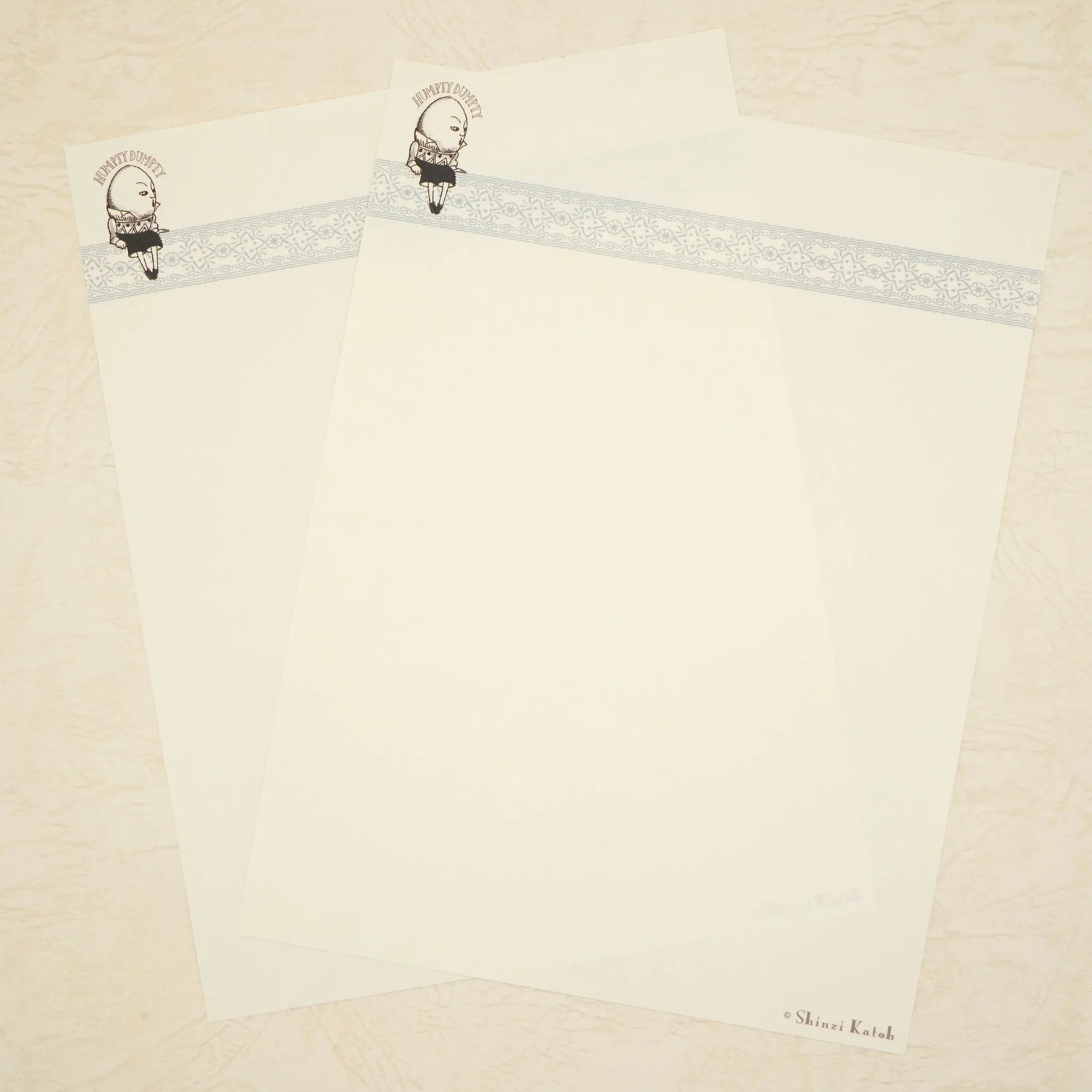The envelope has a fairy tale retro design, and the letter paper has characters drawn on the top and edges.