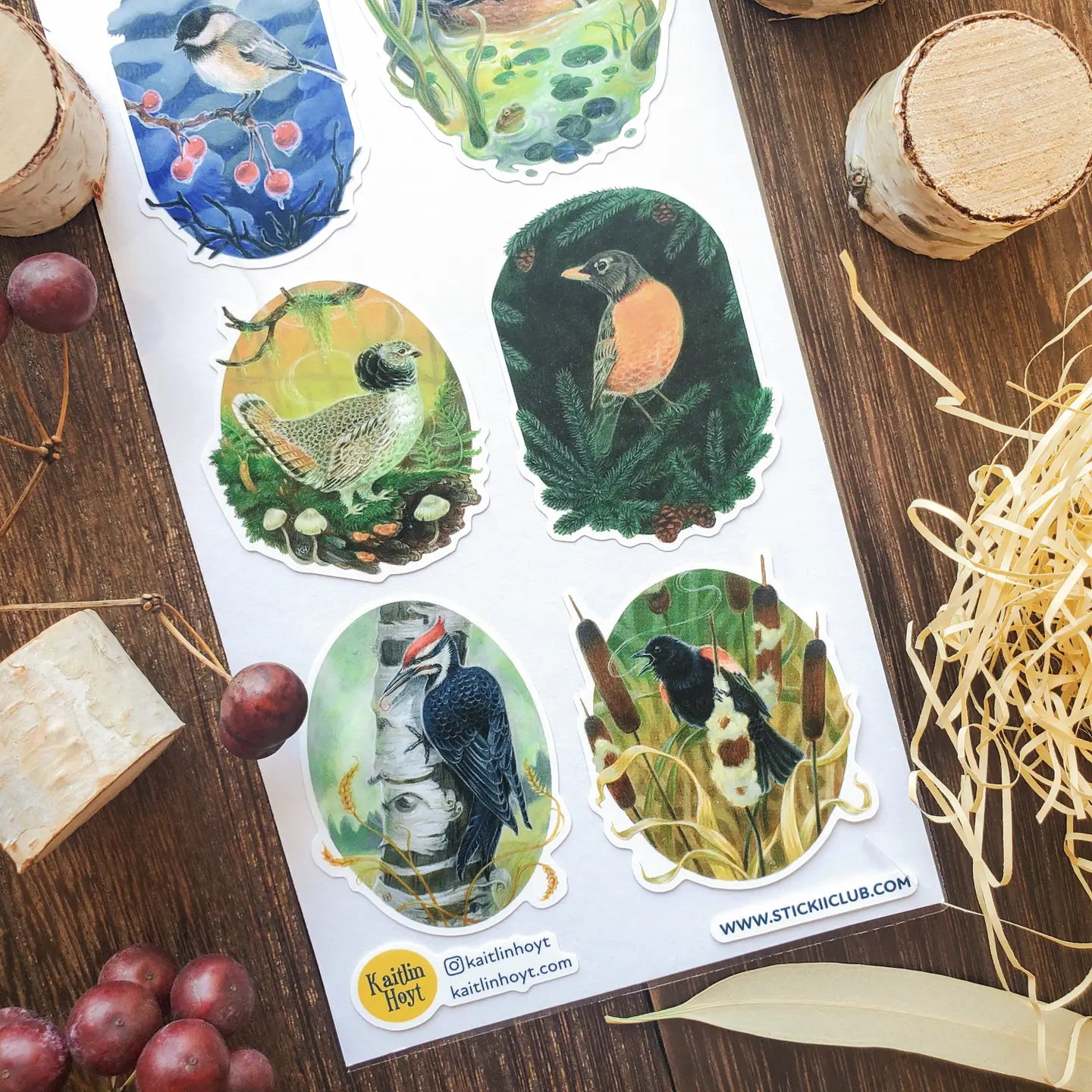 🐦 @kaitlinhoyt brings us little windows to wilderness, where feathered friends perch through seasons and time. Each sticker invites you into a different wild world—from snowy chickadee mornings to cattail marshes at dusk. These elegant nature vignettes will bring a touch of the wild to any surface.