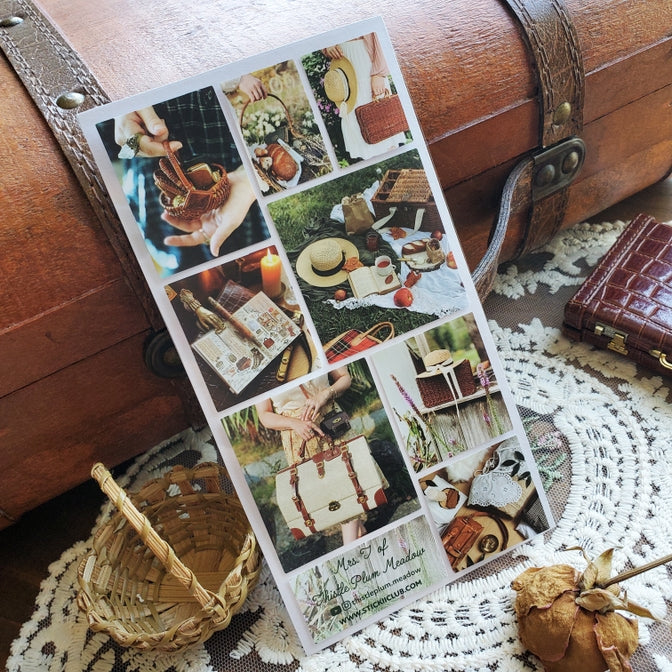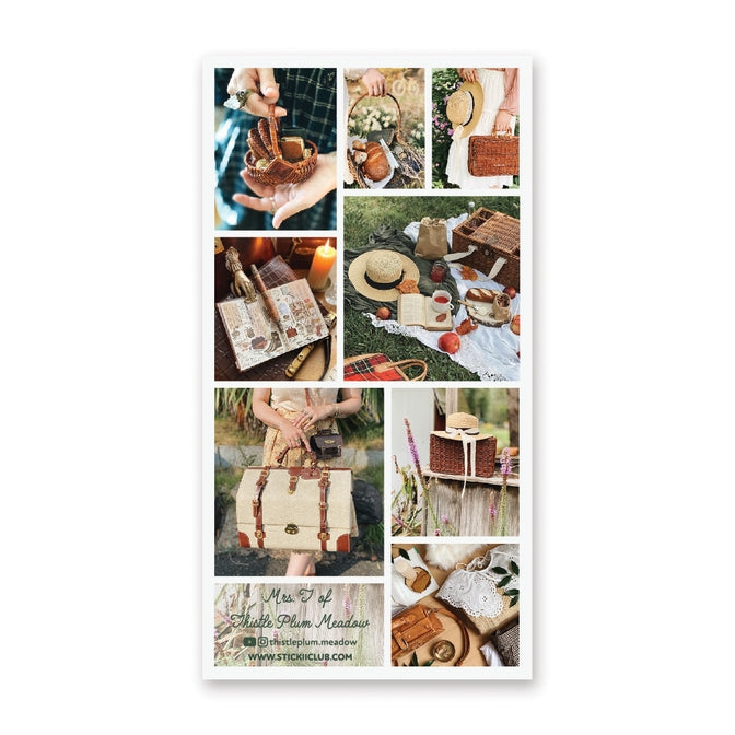 🧳 Cuando estés de vacaciones, querrás tomar muchas fotos. Esta hoja de @thistleplum.meadow incluye fotografías reales que son perfectas para agregar un toque retro inspirado en los viajes a tus páginas. Con fotos de un elegante equipaje vintage y una serena escena de picnic, este encantador conjunto nos lleva a una aventura con estilo.