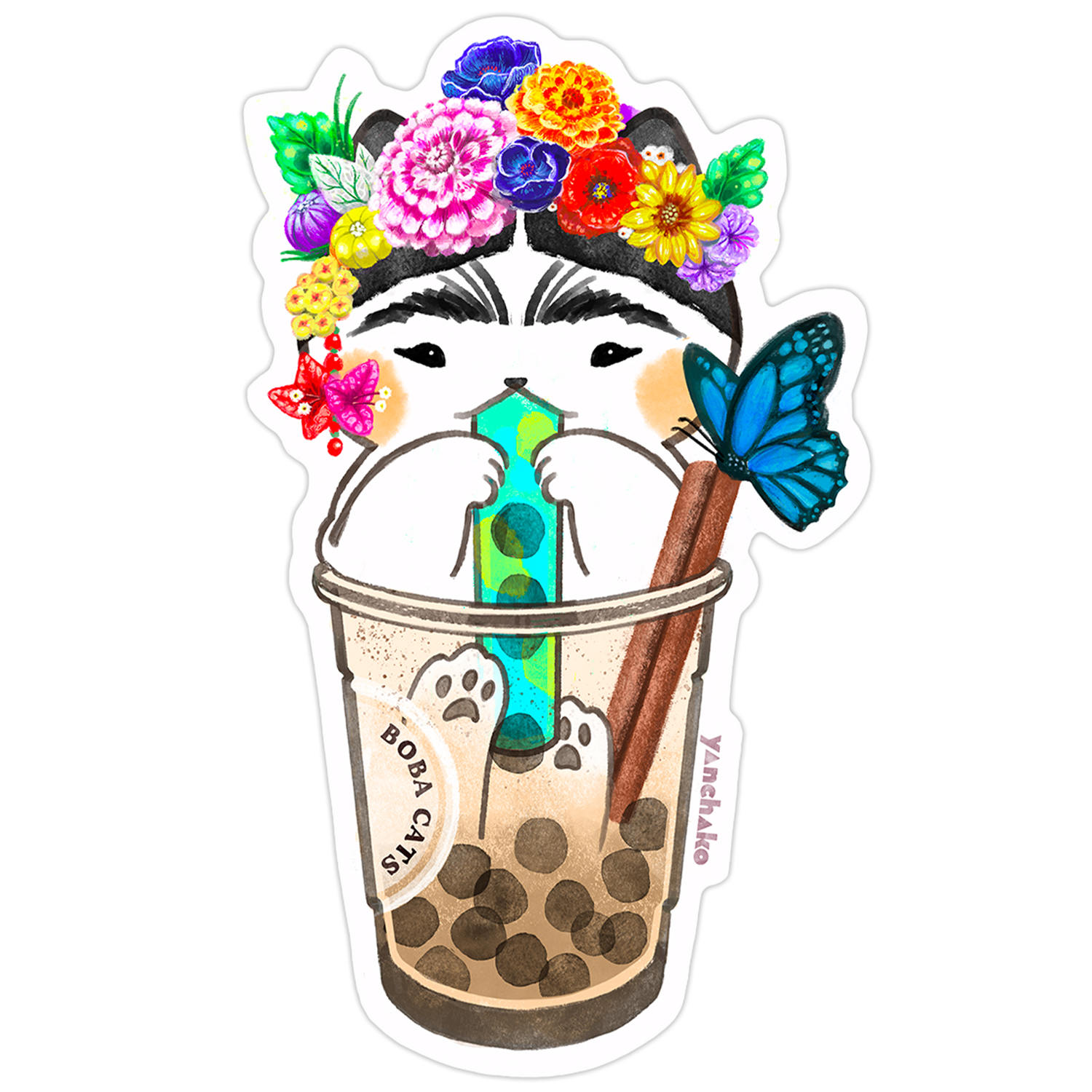 Pegatina de vinilo del gato Boba Frida