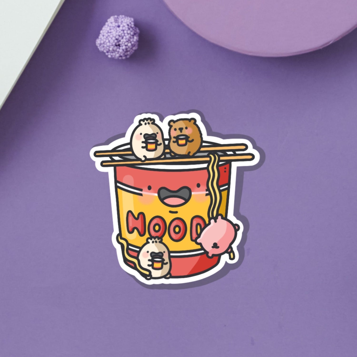Pegatina de vinilo con forma de fideos instantáneos