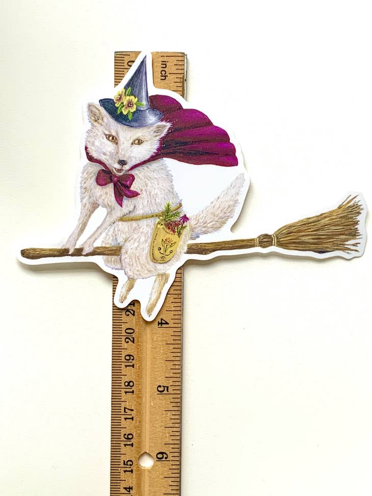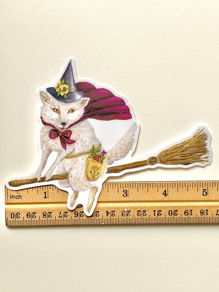 Una calcomanía de vinilo que presenta al zorro brujo ártico de la pintura del artista "Moon Fox Magick". ¡Es una chica popular!