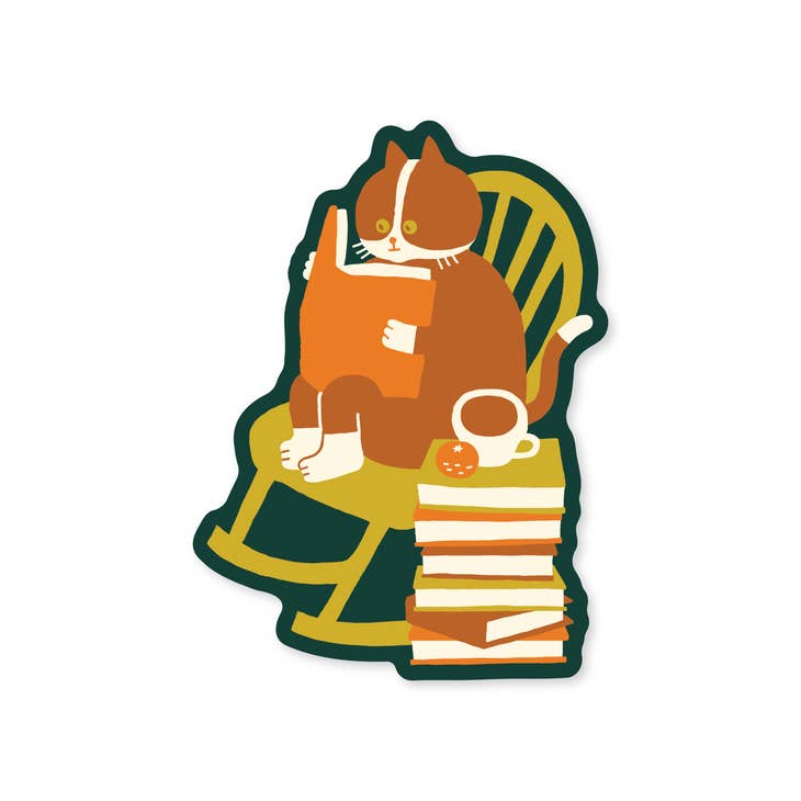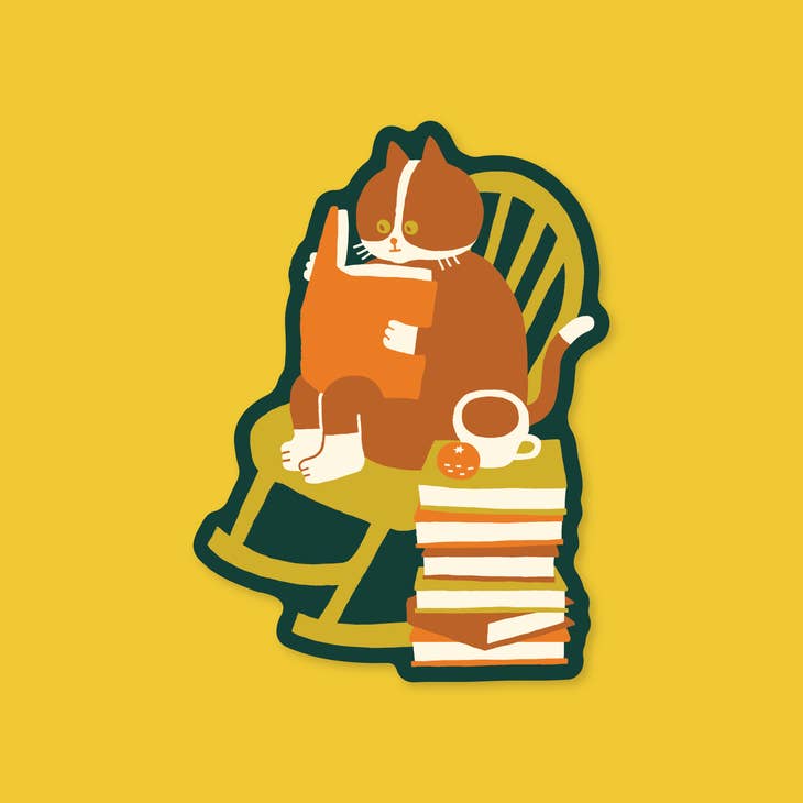 Este gato tan tierno solo quiere quedarse en casa leyendo un buen libro. Esta calcomanía de vinilo duradera es resistente al agua y a la intemperie, perfecta para decorar cosas como botellas de agua, autos y computadoras portátiles.