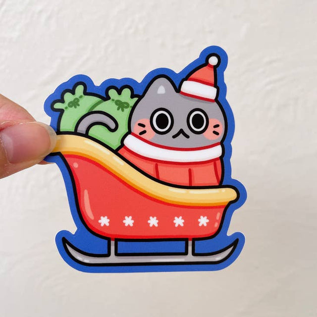 Pegatina de vinilo del gato del trineo de Papá Noel